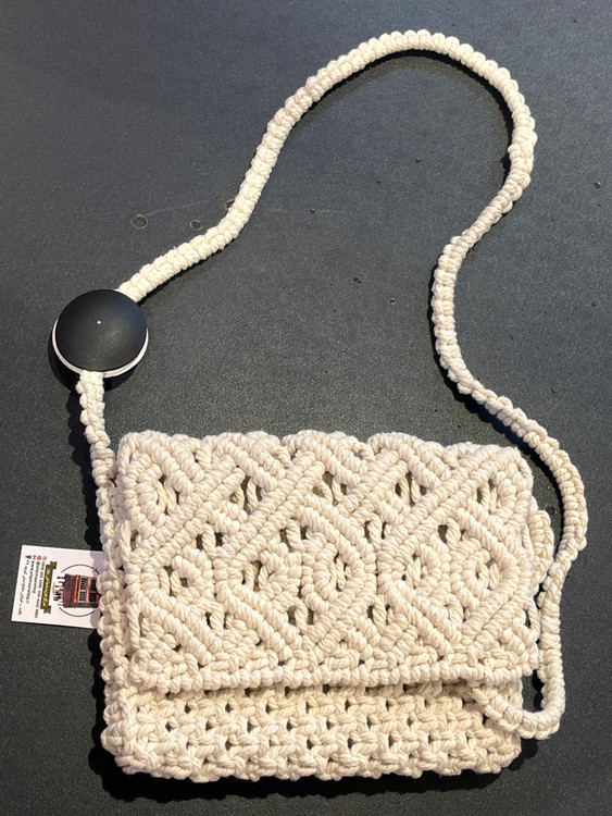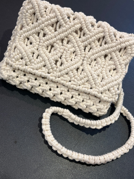 نام محصول :کیف مکرومه دسته دار لوزی کد کالا ۸۳۳۹