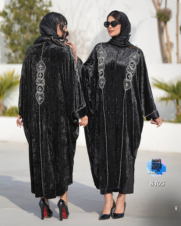 مانتو عبایی مخمل کد 8405 با ترکیب طراحی مزونی، پارچه لوکس و جزئیات سنگدوزی، گزینهای عالی برای خانمهایی است که به دنبال استایل شیک و خاص هستند. این مانتو را میتوانید با کیف و کفش مجلسی ست کنید و در مهمانیها بدرخشید. ✨