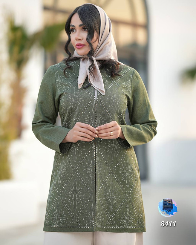 مانتو کتان لمه گلدوزی نگین لوزی ۱۵۹۰کد کالا ۸۴۱۱