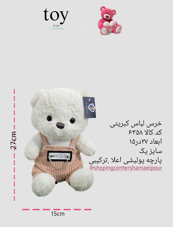 خرس لباس کبریتی کد کالا ۶۳۵۸ ابعاد ۲۷در۱۵ سایز یک پارچه پولیشی اعلا .ترکیبی