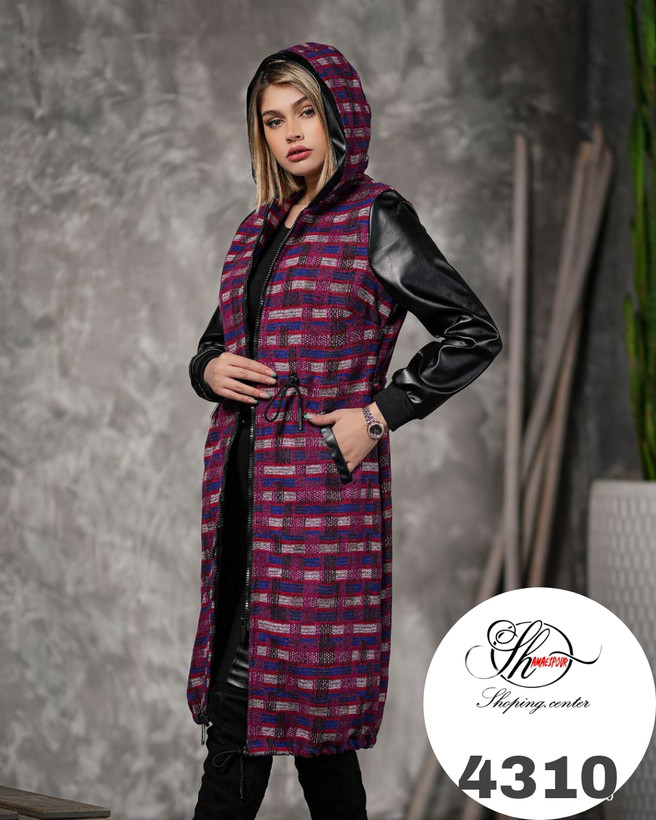 پالتو پشمی آستین چرم کد کالا ۴۳۱۰