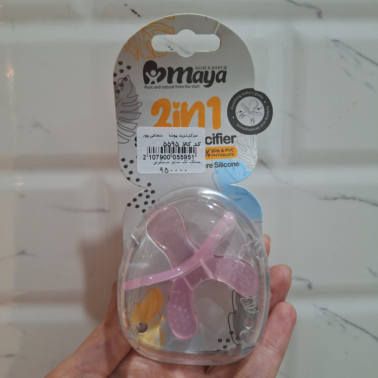 یک محصول دوکاره میباشد که یک سر آن ب عنوان پستانک و سر دیگر ان دندانگیر است . این محصول ب طور کامل از سیلیکون غذایی با خلوص ۱۰۰درصد ساخته شده است .