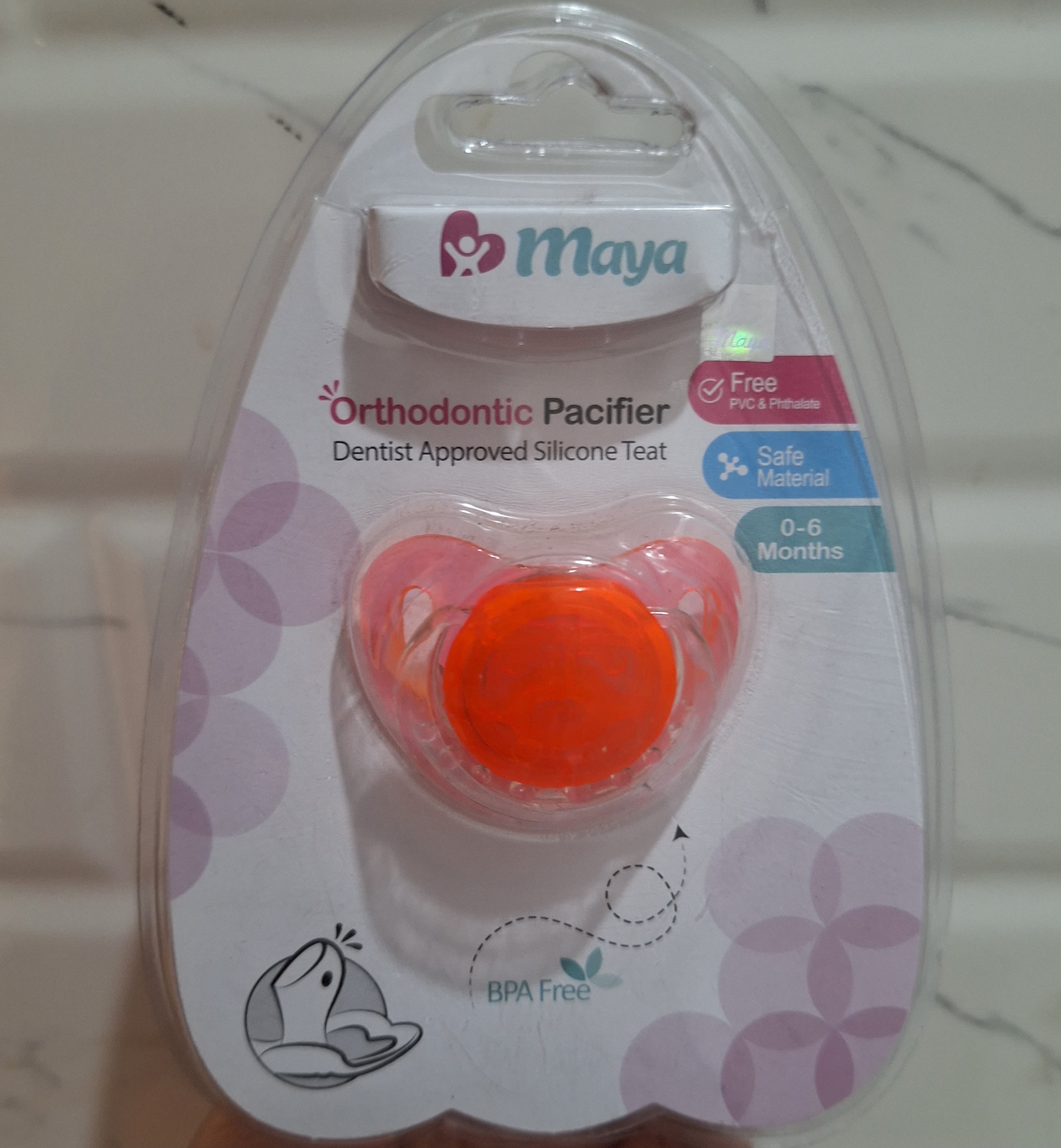 پستانک ارتودنسی مایا برای کمک به رشد سالم فک و دندان کودک طراحی شده ودارای منافذ روی بدنه است .