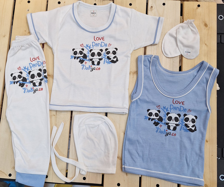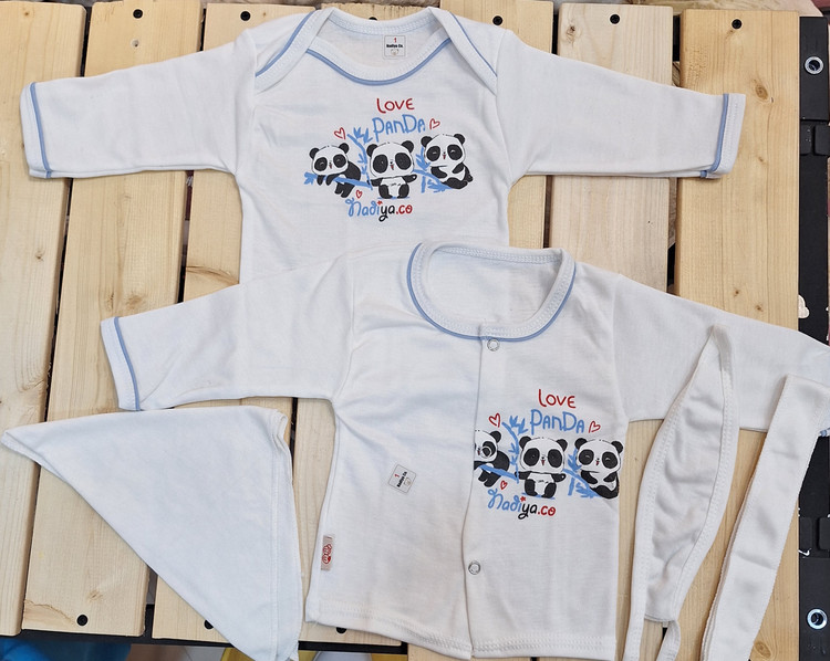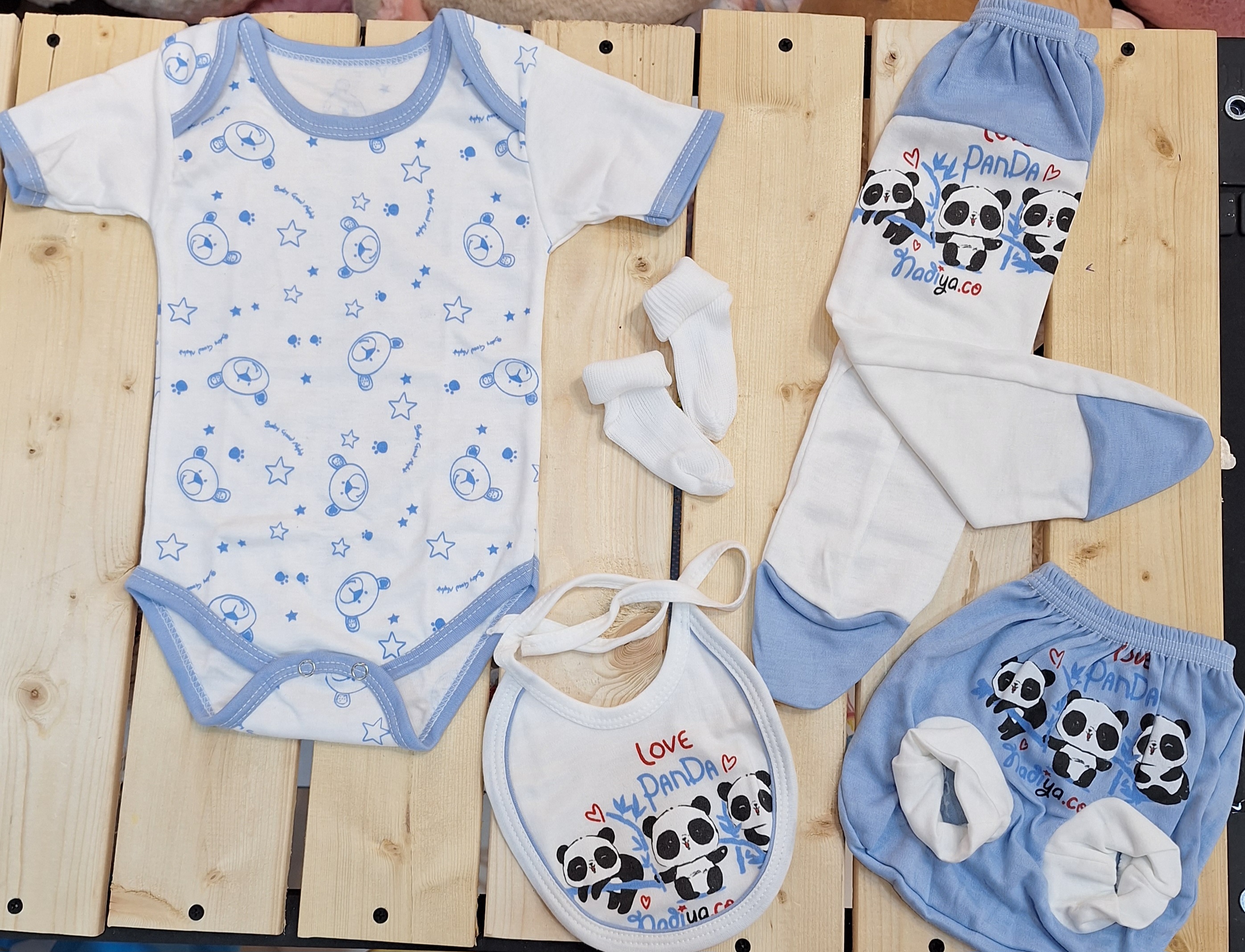 جوراب . دستکش.روسری. قنداق.بند قنداق . بند نافی .آستین کوتاه . شلوار. شورت عینکی.۲ عدد کلاه. شلوار جورابی.آستین کوتاه .زیر پیراهنی.آستین بلند . لباس زیر دکمه.پیش بند