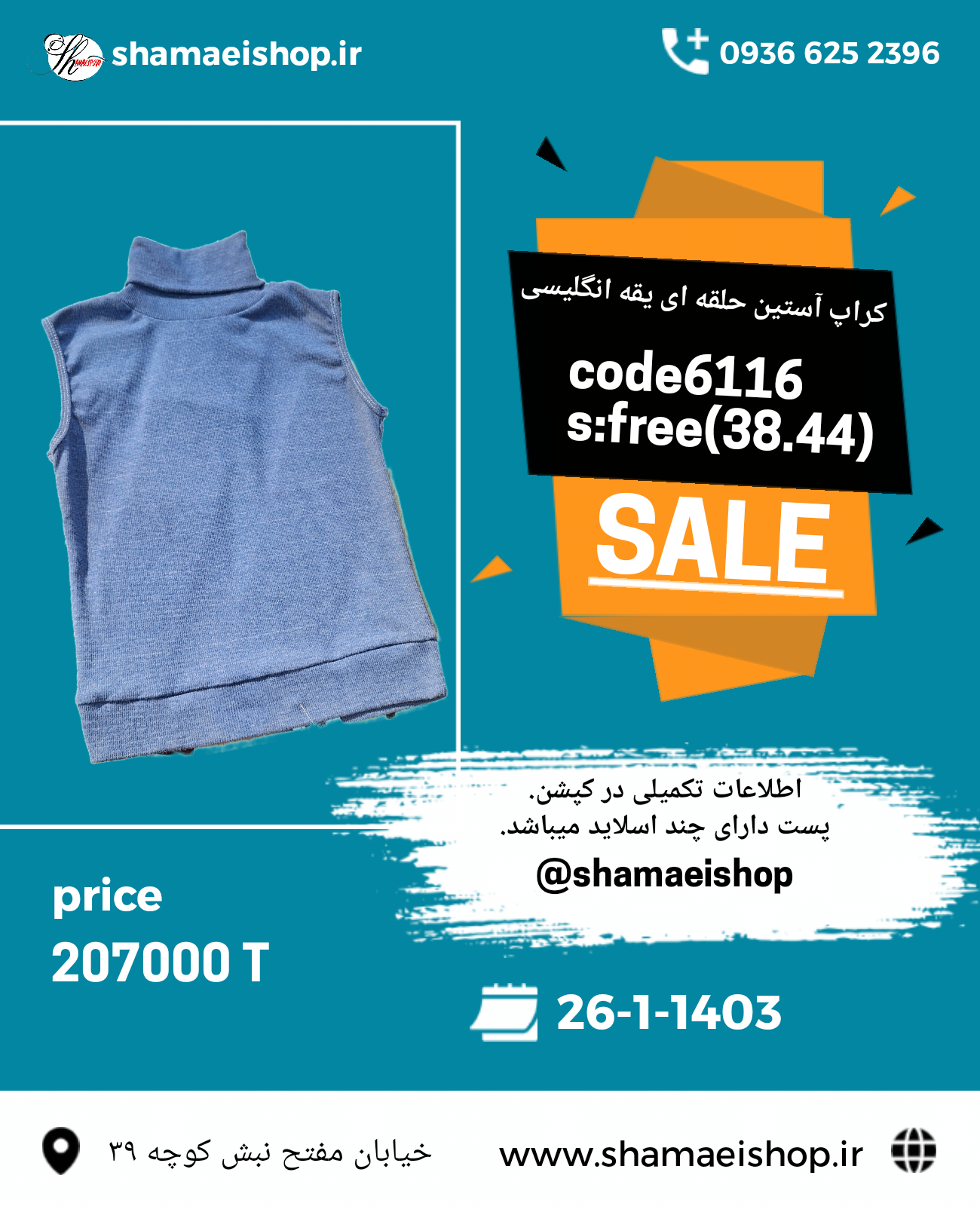 نام محصول : کراپ آستین حلقه ای یقه انگلیسی